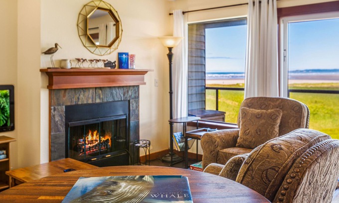 Walking into the newly remodeled Whale Song Condo, you're greeted by the ocean views out the windows, a cozy electric fireplace, two super-comfy recliners and a sleeper sofa. In the bedroom, a queen bed can help you wind down at the end of your day.