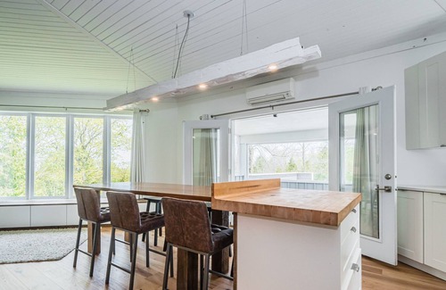 5. Enjoy the gorgeous kitchen long bar for large groups or families with a massive butcher block and modern kitchen.