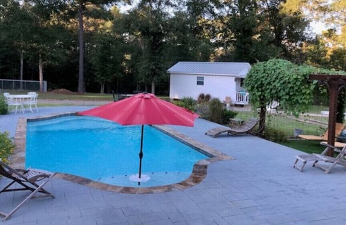 Ever wonder about staying in a country cottage? Well come get a taste of the country life on a pristine 5 acre property! One bedroom, one bath cottage home with a beautiful porch to relax on. Sun at the pool during the day and gaze at the stars at night. Lots to do in Huntsville, Conroe, New Waverly, and Coldsprings including local wineries and antique stores!
