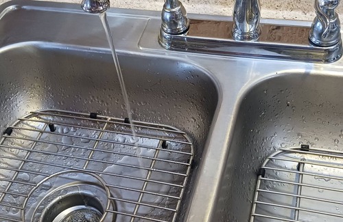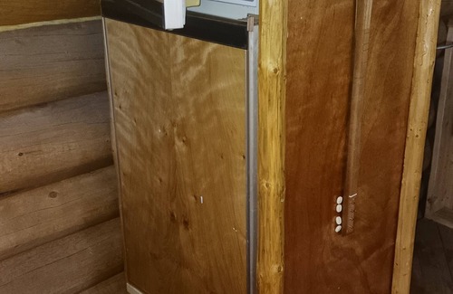 Though there is running water, it’s from a spring, so it’s not potable (not drinkable), so we highly recommend bringing all your drinking water from home. We normally bring a couple of large containers of tap water with us along with bottled water, depending on the time of year and how many people are coming. The kitchen has a 24” propane gas stove with oven and four burners. I’ve done a lot of cooking and baking up there. There is a small propane refrigerator with a very small freezer. There is a double sink. Dish soap, sponges, and paper towels will be supplied. There will be plates, cups, silverware, pots, and pans available to use.