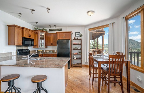 Nestled in the heart of Estes Park, Colorado, this beautiful ground level condo, offers a direct view of the Northern Mountain range of Estes Park. Snowcapped peaks in the winter and mountain spring water running down into the streams below during springtime, provide all the flora and fauna needed for life to flourish. Wildlife visitations are daily, so get your camera ready for those picture-perfect photo ops that are priceless! Whether you are being adventurous or just want to enjoy simple pleasures, this space is perfect for every moment of your vacation. You may not want to go home!