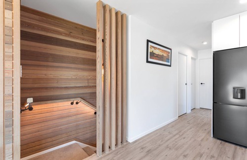 Upstairs the open-plan living, dining and kitchen area flows seamlessly out onto the sun-drenched balcony, equipped for stunning alfresco dining and BBQ's with a view!