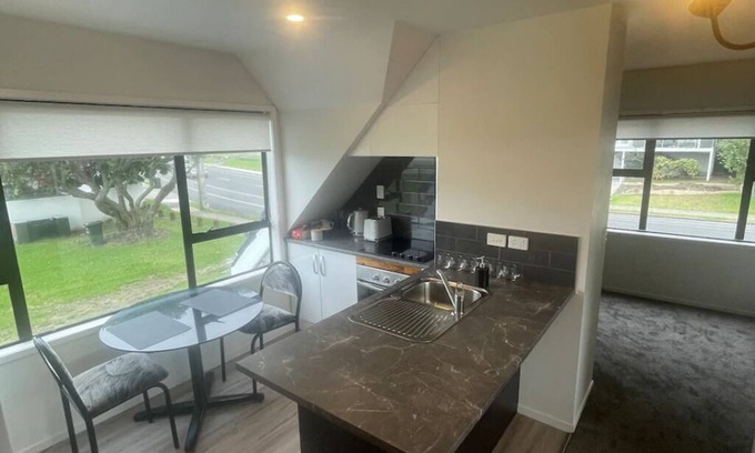Upper unit right in Ohope proper with sea views and direct access to the beach.