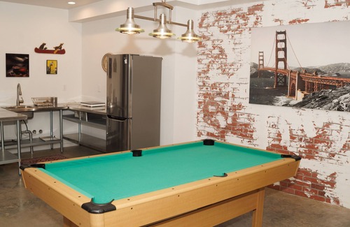 Relax in the private hot tub or sip a drink by the firepit of this vacation home. As for the great indoors, you can come inside and enjoy the free WiFi and pool table.