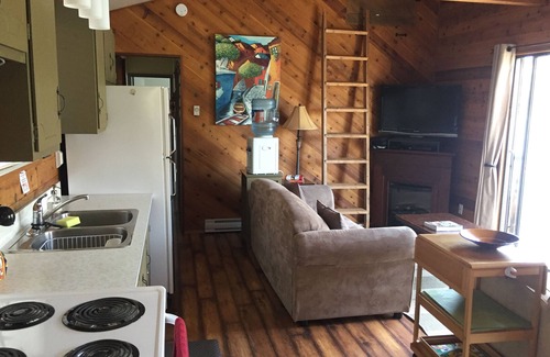 Enjoy a lakefront beach vacation! Canoe, swim, golf, fish, suntan, and play. This 2 bedroom private cabin is located on Twin Lakes, in Kaleden, BC. This lovely setting is just 20 minutes West of Penticton or Okanagan Falls, and 15 minutes from Keremeos. There is also a golf course, a convenience store, and liquor store, within a 5 minutes drive.