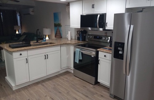 Devastated by hurricane Idalia in September 30, 2023. This property has been completely remodeled. Everything is new. This bungalow consist 900 ft.² with two bedrooms. Nestled on an estuary where the river meets the sea you can literally watch the water flow under you. All rooms have waterviews. This Old florida style home located in Ozello Keys is located near restaurants and several natural springs. People from all over the world come here to enjoy swimming with Manatees and world class fishing. Scallop season is also a big attraction. The beautifully decorated bungalow has 2 bedroom and one bath, granite countertops and screened front porch with outdoor furniture. However, don’t let the size fool you. Most attractive about the home is the back deck with fire-table, gas grill, fire pit, and private dock. The deck has two beautiful gazebo’s equipped with privacy coverage and screen closures to keep out the mosquitoes. Included are 3 kayaks for your enjoyment. You can also fish off the dock. Use our traps to catch fresh Blue Crabs right off the dock. Locals here are very friendly. There are 3 flat screen TVs with Firesticks/Roku. Use them to access Netflix and other Apps. Free Wifi included. Enjoy this diamond on the rough. NOTE: The property is close to the gulf and the water is tide dependent. It can get very shallow. Guests that choose to dock their boat on my dock do so at their own risk. There is plenty of room to park in the driveway. There are also several ramps nearby and a marina 5 mins away where you may dock for the duration with very reasonable prices and services.