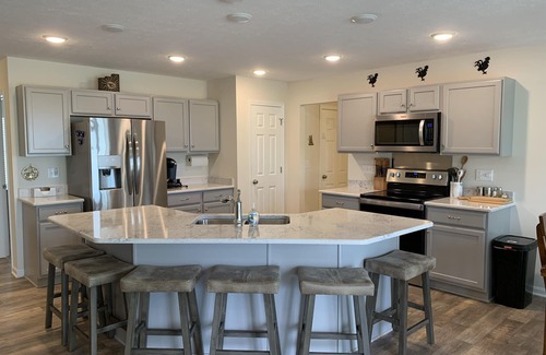 Beach N’ Peaks Lake House is brand new, built in 2019! This stunning 5 Bedroom, 3 Bath, ranch style home has dual master suites with an open floor plan and is located in Huron's Old Homestead #1 subdivision. This home is situated across the street from one of the nicest beaches you will find on the shores of Lake Erie and offers breath taking lake views! Private Beach access with sand volleyball! A great area to walk, bike, run, and enjoy the neighborhoods park with swings, tennis court, basketball court, and a baseball diamond. Close to shopping, golf, restaurants, wineries and is approximately 10 minutes from Cedar Point, Great Wolf lodge, Kalahari, and African Safari Wildlife Park. Only minutes from the downtown Boat Basin, boat ramps and Amphitheater with free live entertainment during the weekends in the summer!