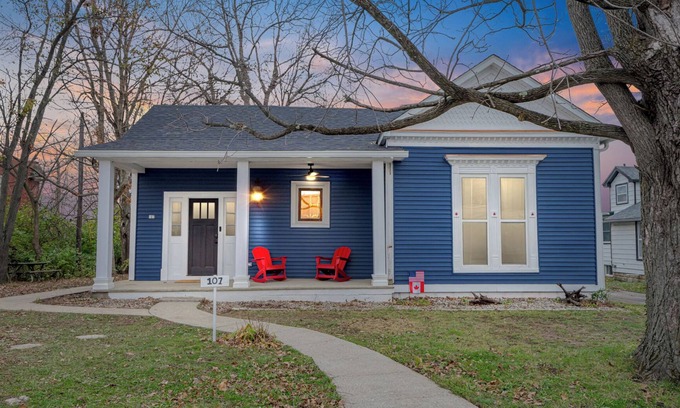 Welcome to your home away from home! This beautifully remodeled 3-bedroom, 2-bathroom retreat offers the perfect blend of historic charm and modern luxury, comfortably accommodates up to 12 guests. As you step through the front door, you’ll be greeted by soaring 11-foot ceilings, a cozy fireplace, and a stunning preserved stained glass window that adds a touch of elegance to this restored 1901 gem located on Kentuckys Bourbon Trail in Elizabethtown Kentucky.