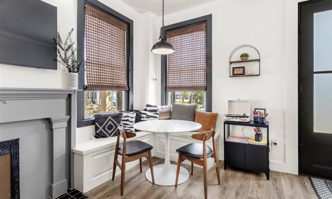 A dedicated workspace at the living room table ensures productivity, while secure parking makes urban exploration convenient. With free parking and self check-in via a smart lock, your arrival and departure are seamless. Golf carts are also available to rent, offering a fun and easy way to explore the area.
