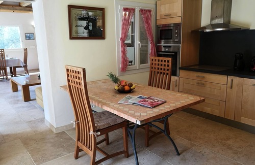 Here, the renovation has been designed to preserve the soul and authenticity of the place, while offering optimum comfort: travertine floor, beams and chestnut ceiling, exposed stones, 180 cm bedding, hand showers. Italian, tumble dryer, Wi-Fi ...