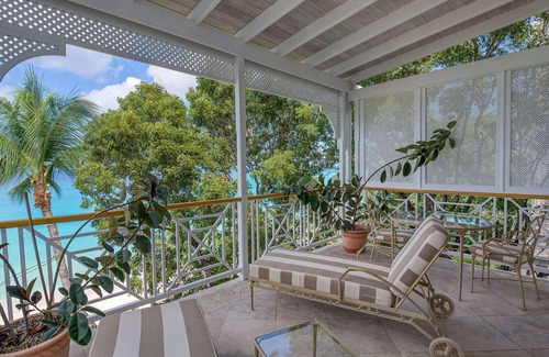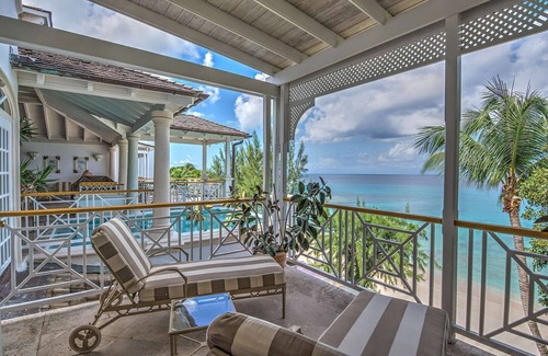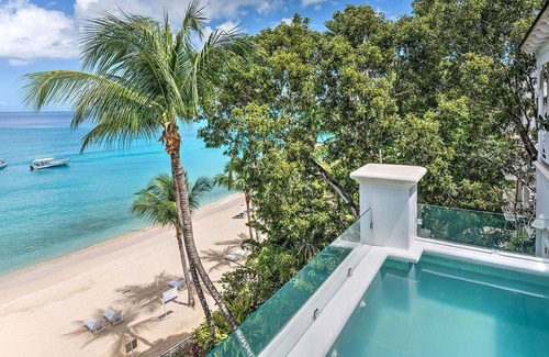 The cooling tradewinds and top floor seclusion make it an idyllic sanctuary, enhanced by breathtaking views across beautiful Paynes Bay Beach. Expertly maintained gardens and a free-form communal swimming pool further complete the island setting.