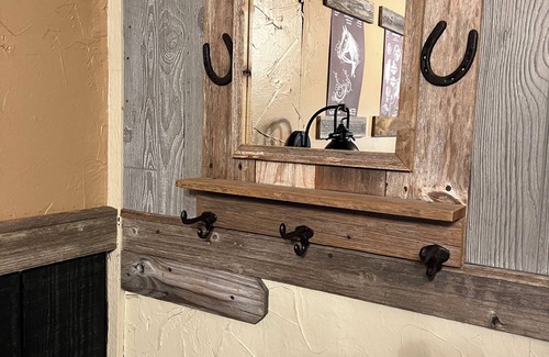 "The Sheriff's Office" is complete with WANTED posters! Definitely a safe, cozy room with all the modern amenities in an old west frontier setting. Our 11 Frontier rooms are themed with a western flair.