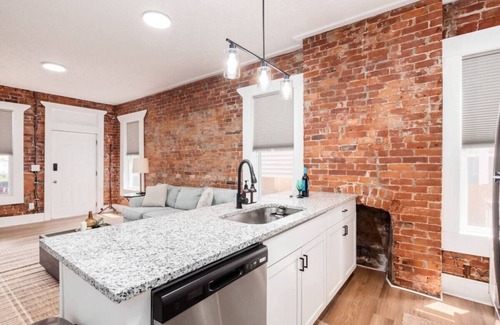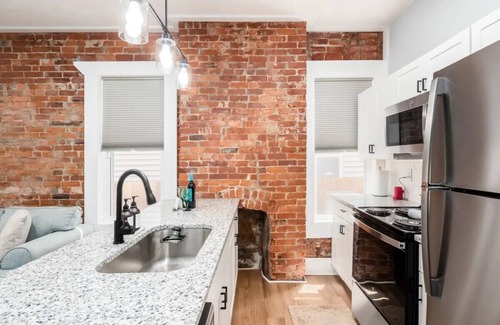 Welcome to Olde Towne Jewel, your stylish urban retreat. Nestled in a historic brick duplex, this two-bedroom, one-bathroom townhome exudes charm and modern elegance.