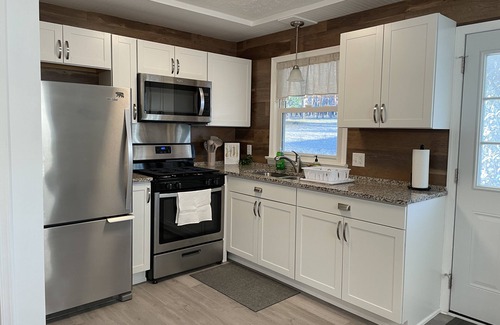 The kitchen, with all new appliances, has been stocked with the basic things (pots, pans, utensils, etc) you need to cook a meal. If you prefer to go out for meals there are a couple small town options, a favorite being the subs from Millstone Country Store just 4 miles up the road and lots more options in the Cumberland area, about 20 minutes away.
