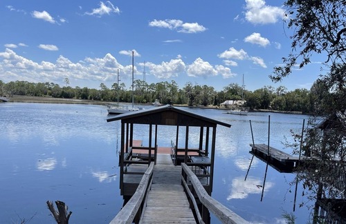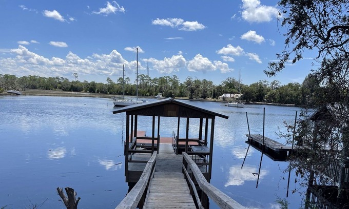 The Ole Hickory Cabin sits on an ole hickory hill only a few yard from the Steinhatchee River. This charming newly renovated cabin offers a one bedroom with a queen bed and a full bathroom. This cozy little charmer has all you need for enjoying your stay at Steinhatchee. After a day out on the water if you prefer cooking your catch there's a complete full size kitchen to accommodate your cooking skills. Plenty of room to park all your trailers, large yard and a nice back porch for grilling or enjoying an afternoon breeze. Deep water Dock is only a few yards across the street from the cabin and offers one boat slip. Ole Hickory is located in the middle of Steinhatchee and is a short walk to several restaurants, marina's and drinking establishments. Can sleep up to three with sofa bed in living room . Free WiFi and Dish SAT TV.