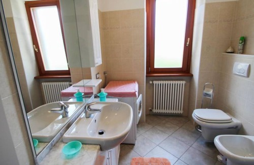 Rustic apartment house. In the hamlet Ghiano 700 m from the centre of Cremia, in a sunny position on a slope, traffic calmed area, 750 m from the lake, in a cul-de-sac. For shared use: terraced garden with flowers and trees. Garden furniture. 50 m long narrow motor access to the house. Parking on the premises. Grocery 1 km, supermarket 4 km, bar 800 m, bus stop 750 m, railway station "Como" 47 km, pebble beach "San Vito" 900 m, outdoor swimming pool 8.5 km. Golf course (18 hole) 17 km. Nearby attractions: Menaggio 11 km, Como 45 km. Please note: car recommended.
