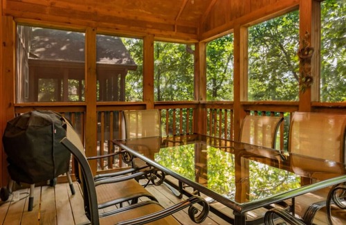 The duplex cabin is the perfect getaway for those wanting to relax and enjoy all that Branson has to offer. This 1 bedroom 1 and 1/2 bath lodge sits quietly against the edge of nature, providing a beautiful and secluded view of the trees right off the screened in back deck
