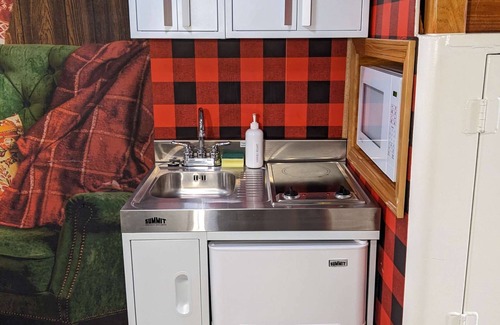 Experience a truly luxurious stay on the rails in our train car, which is fully equipped with all the amenities you need for a comfortable and unforgettable stay. Relax on the plush couch, gather around the dining table for four, and whip up delicious meals in the compact kitchen, complete with a microwave, stovetop, and mini fridge. Refresh yourself in the convenient shower or indulge in a soothing soak in the whirlpool bathtub.