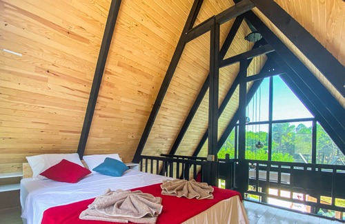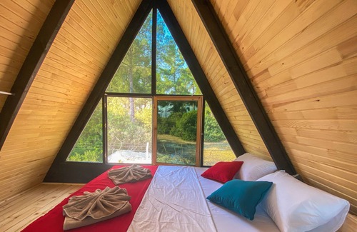 This A-Frame property is made entirely of natural wood and is one of only16 villas at the Benim Koy complex. The villa is well-equipped with a kitchen that is open plan to the lounge area. Free Wi-Fi, dishwasher, washing machine and TV are there to compliment your stay. There are two bedrooms - 1 x twin room on the ground floor and 1 x double room on the first floor, the bathroom is also on the ground floor.
