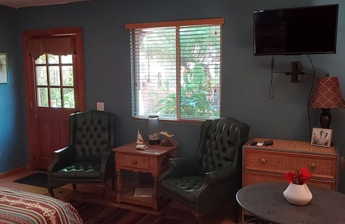 The Sea Horse Casita is a one bedroom guest suite (360 square feet living space)located at the base of the Flat Iron Peak in Pinal County and has remote controlled private gate surrounded by a 5 foot concrete wall enclosing the entire property and another 6ft concrete wall enclosing a private peaceful Zen Garden located off the casita. The property has 3 unique water features and 2 with koi fish. There is a palapa located on the property for sunrise and sunset views. Guest have access to a honeybee style Arizona fireplace for night fires in the Zen Courtyard with the availability to roast marshmallows and star gazing with a wonderous view of Superstition Mountain's Flat Iron Peak (5200 ft elevation) .There is also a charcoal grill in the Zen Garden for cook outs and a gas grill upon request. The casita has a queen size bed, portable computer table for a workspace, microwave oven, utensils, cork screw, wine glasses, coffee maker, midsize refrigerator, wifi internet, Cablevision TV with Blue Ray DVD for movies, small kitchenette with a sink (No oven/Stove, HVAC (heating/air conditioning) and private bath tub/shower. The casita has free parking with 2 private entrances, one to the Zen Garden and one to the parking area on the property located southwest corner. The casita has the best window view of the Superstition Mountains and is are located at the base of Flat Iron Peak. We are 4 miles south from the Lost Dutchmen State Park and the Goldfield Ghost town. We are 5 miles from Gold Canyon, Arizona and 30 minutes from Sky Harbor Airport. We are also 20 minutes from Scottsdale, Arizona. We are 3 miles east of Apache Junction with access to grocery stores and shopping. Our natural amenities are internationally recognized hiking trails, horse back riding, boating, kayaking, Seadoo, fishing, rafting, tubing, swimming, and a walk through native american history. We recommend rental cars for transportation, however, Uber does pick up at our location.