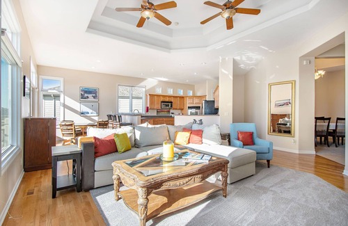 This 4 bed, 4 1/2 bath home has just under 4,000 finished square feet of living space. With your own home gym and additional queen Murphy bed in the downstairs living area, it can accommodate a large family or group traveling together.