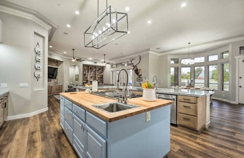 FULLY STOCKED KITCHEN: This chef’s dream space has everything one could want, including, but not limited to a huge walk in pantry space, Sub-Zero fridge and freezer, ice maker, double ovens, gas stove, microwave, griddle, pots, pans, waffle maker, rice cooker, blender, spices, Keurig coffee maker, abundant utensils, dishware and flatware, etc.
