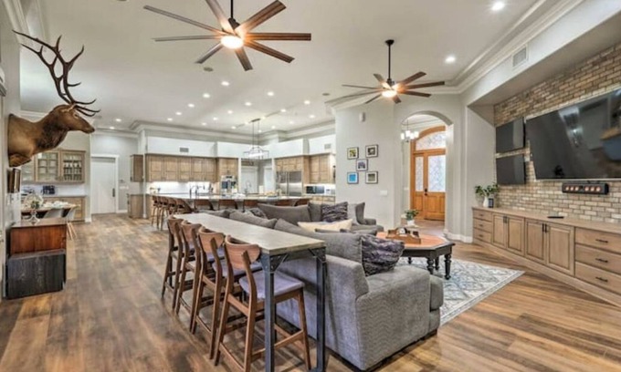 Omega House w/Pool & Pickleball has 7 Bedrooms , 5 Bathrooms, and max occupancy of 18 people. The minimum rental for this property is 1 nights, but this can change depending on the season you plan on staying. Previous guests have given good rated it, and VRBO labeled it a top-rated House because of the excellent services rendered by the owner or manager of this House, and has consistently provided great experiences for their guests. Most families or guests that use it recommend it to their friends and some of them are repeat guests. House has a friendly neighborhood, and the Mesa has interesting places to visit. If you want to learn more about the House in Mesa, such as places to visit and things to do nearby, you can check below to learn more.