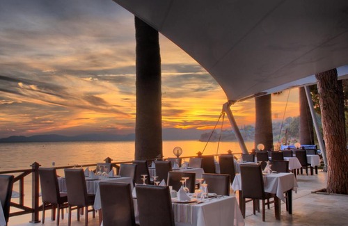 Located in a peaceful area in Kusadasi, Omer Holiday Resort offers a private beach and 2 restaurants with sea views. It has a Turkish bath, a sauna and air-conditioned rooms with satellite TV. The hotel offers a large swimming pool with slides, umbrellas, sun beds and cushions. Decorated in soft colours, rooms of Omer Holiday offer marbled bathroom with hairdryer. All rooms have a balcony or a patio, and some rooms also have a spa bath. Marine Restaurant and the à la carte Yelken Restaurant serve fish, Italian and Mexican dishes. Guests can enjoy a drink or a snack at the beach and pool bars. The Ottoman Café also offers drinks. Beverages, light dishes, cookies and variety of snacks are served all day. Guest can visit the fitness centre or play some tennis at Omer Holiday. Daily and nightly shows are performed by the hotel’s entertainment team and there is also a disco on site. Guests can enjoy the day at the beach fitted with umbrellas, sun beds and cushions. Beach towels are provided for your comfort. There are also on-site facilities to play basketball and beach volley. Friendly staff at the Mini Club will be happy to entertain your kids with activities and games. A playground is available on site. You can relax at the hotel's Turkish bath and sauna with reservation. Variety of beauty treatments and massage therapy are offered upon request at a surcharge. Omer Holiday is only 5 km away from Kusadasi’s centre, and Ephesus Ancient City is 26 km away. Pamukkale is 189 km with beautiful travertines. Izmır Adnan Menderes Airport is 80 km from the property, while Bodrum Milas Airport is 119 km away. Free parking is available on site.