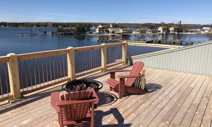 The rental features panoramic views of the heart of Cedarville Bay and the Les Cheneaux Islands on a 2018 newly renovated channel side Deck! The views from the deck on the third level are magnificent, as can be seen in some of the pictures.