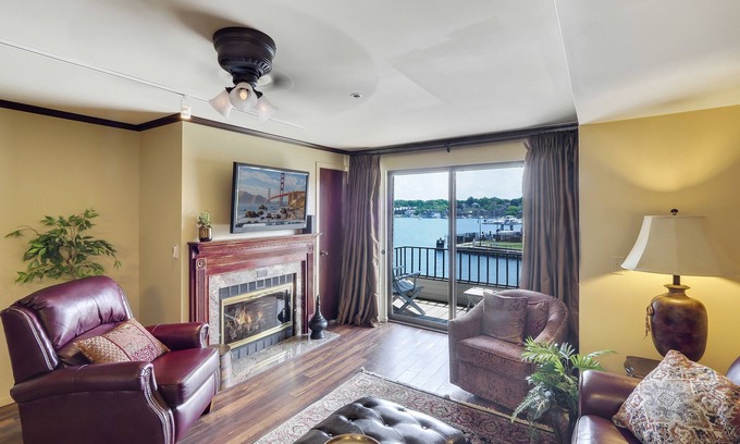 With seating for 5 and the ambience of a fireplace, Don't forget to enjoy the balcony as the boats sail in and out of Round Lake.