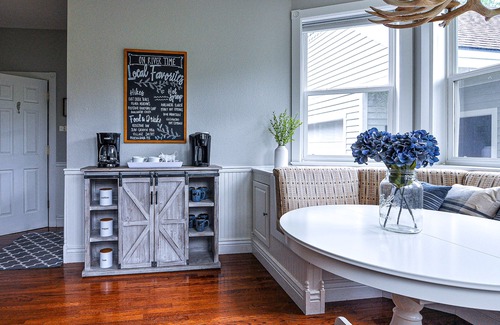 *Fully equipped kitchen with stainless steel appliances, butcher block countertops, and a coffee station (drip, Keurig, French press, and teapot)