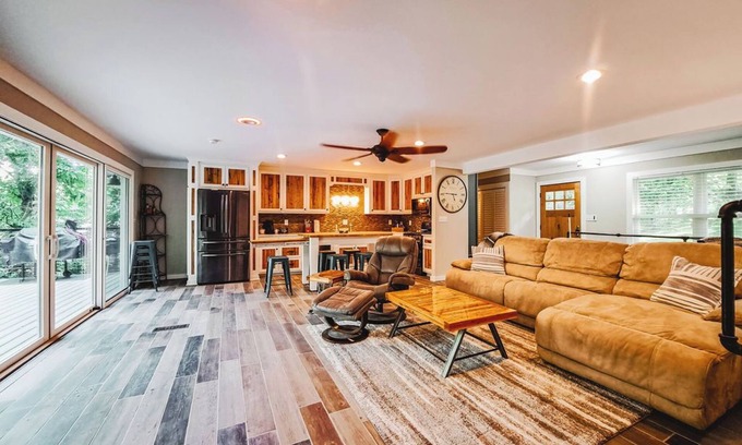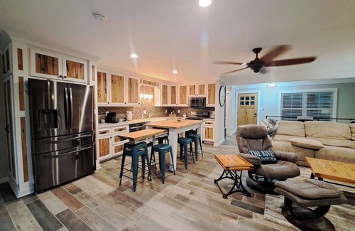 Two Large Private Decks (Upper & Lower) | Pet-Friendly | Free WiFi | Direct River Access | Fire Pit | Kayaks & Tubes | Multiple Grills | Full Bar | Fishing Poles | Basketball goal