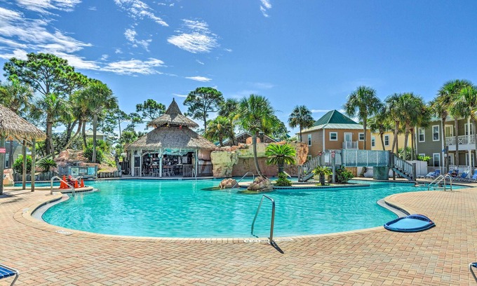 Relax, unwind, and explore the shores and popular sights of Pensacola, all from the comfort of this beautiful 2-bedroom, 2.5-bathroom cottage! The vacation rental boasts a prime location near the beach and amazing on-site amenities like a bar and restaurant that turn up the fun with live music and karaoke! When you’re not tanning by the pool, cool off inside and stream your favorite show on the Smart TV. Head into town for nightlife, delicious seafood eateries, and iconic attractions.