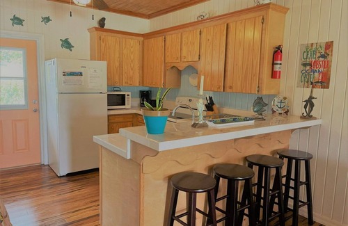 This villa rental offers all amenities including a fully equipped open kitchen, spacious living area, A/C, ceiling fans throughout, cable TV, Wi-Fi, and washer/dryer. It also offers a very spacious beach front balcony, a great spot to relax with a cool drink after a hard day of fishing, snorkeling, or beachcombing.