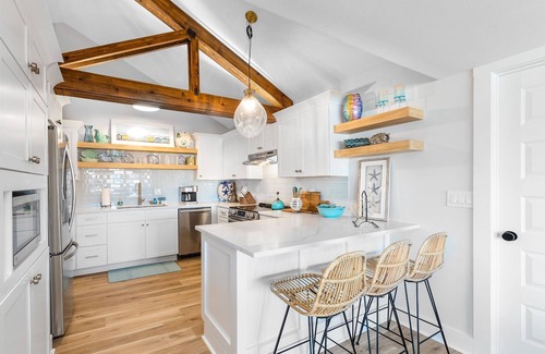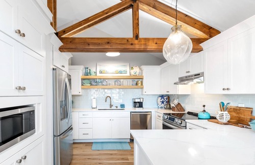 At night, rest in the bedrooms that offer breezy beach decor, cool colors, and the conveniences of home on your Florida vacation. Across the 5 bedrooms, find 2 king-size beds, 2 queen-size beds, and 2 twin bunks. There is space for 12 guests in all, so it's perfect for the whole family or for a group of friends. Enjoy TVs in 2 of the bedrooms and a fun nautical theme in the bunk room!