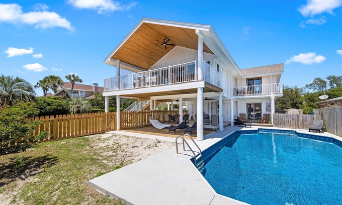 A favorite amenity at this Perdido Key vacation rental is the private outdoor pool just below the beach house. Float, splash, and swim as you watch the boats go by on the canal. Relax on the loungers in the shade, get some sun, or take a nap in the hammock. Theres even a little yard space for yard games from home.