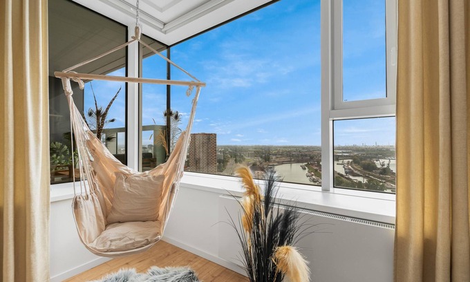 Three-room apartment on the bank of the Danube with a panoramic view from the 29th floor, a newly furnished apartment near Eurovea with parking included.