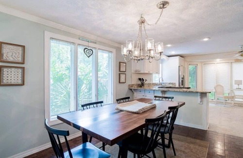 Welcome to Dozing on Dog River, a cozy cottage perfect for relaxation! Our 3-bedroom, 2-bathroom home sleeps up to 10 and features multiple outdoor seating areas, a spacious front porch, a fully-equipped kitchen, oversized TV, and free WiFi. Enjoy nature’s serenity while being just 15 minutes from Downtown Mobile. For water lovers, a public boat ramp is only 5 minutes away. We've included professional photos and real-time images from our cleaning team for full transparency.