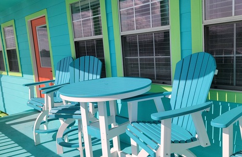 The Barefoot Bungalow is located on the Colorado River in Matagorda Texas. The house features a large open living area and kitchen. There is a large bedroom with 2 bunk beds , twin on top and full on bottom, and a small sleeping area with a full bed, as well as a full sized sleeper sofa. Bath towels and all linens are provided, just bring towels for the beach.