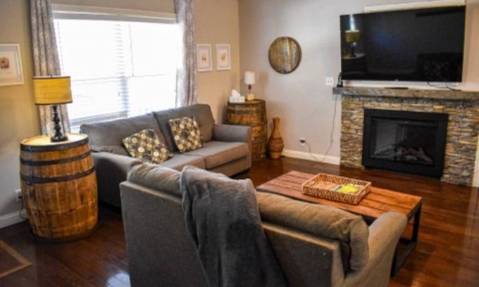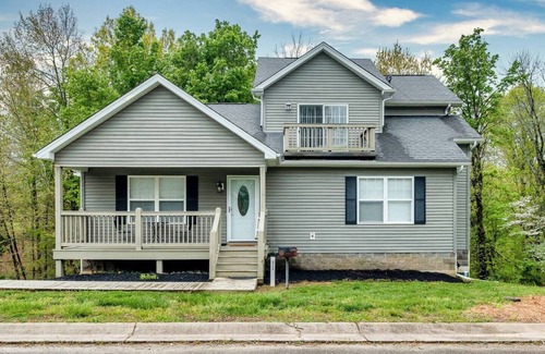 This spacious 5-bedroom, 3-bath lake cottage features a private hot tub, private jacuzzi tub, access to a sparkling community pool, hiking trails, and wildlife views—perfect for groups up to 13. Enjoy a fully equipped kitchen, arcade game, jetted tub, fireplaces, smart TVs, and balconies with partial lake views. Just 2 minutes from Taylorsville Lake Marina and 40 minutes from Louisville, it's the ultimate Bourbon Trail base camp.