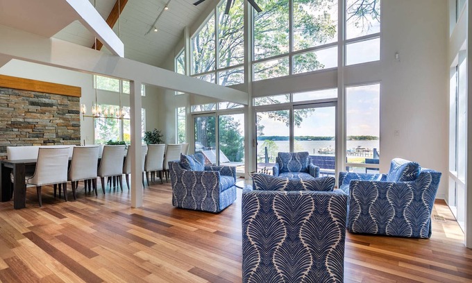 Escape to this spectacular custom-built waterfront estate in Edgewater, MD—just 15 minutes from downtown Annapolis. Styled like a modern ski chalet and nestled on nearly 2 private acres with a private pier and beach access, this one-of-a-kind retreat offers sweeping views of the South River, expansive indoor and outdoor living spaces, and every amenity for your perfect stay.