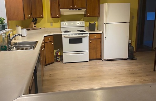 The accommodations offers a sunlit filled living space with 2 bedrooms, open concept full sized kitchen with a massive dining table. The deck and front yard fire pit afford a view of the "Key West like" sunsets or "dark night" atmosphere for star gazing. So please come for the ice cream but stay for the sunsets and the Big Dipper!