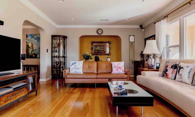 The one-bedroom with private bathroom is spacious and airy. The Spanish style house sits on a sprawling yard of 10581 sq. ft. in a tree line neighborhood rich in history and beautiful architecture. The guest(s) have complete privacy once you close the door and you may SHARE kitchen, living room and dining room with hosts. Your room is quietly tucked away facing our peaceful side yard full of citrus trees and foliage. Guests have access to private keurig coffee maker, microwave and fridge inside the suite for maximum convenience and privacy. Netflix & Amazon Prime Video is available. High speed internet allows distance working or video streaming without any interruption. Close to various local eateries and bars, supermarkets and old town Monrovia. We are within 0.5 miles of the DRIVE workshop, 2 miles from Arcadia arboretum, 3 miles away from Santa Anita Horse Race, 3.5 miles away from City of Hope and 4.5 miles away from Speedway Irwindale. Whether you come for business or for vacation, enjoy the tranquility, comfort and convenience of this rental.