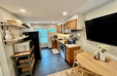 Ideal for traveling business professionals or temporary housing. Recently renovated with all new furniture and bedding. Kitchen equipped with all basic cookware/utensils, small dinning area, pullout sofa, 55" smart TV, washer and dryer in unit. Short 5 minute drive to Interstate Rte. 93, minutes away from Canobie Lake Park, the Tuscan Village and the Rockingham Rail Trail. Manchester, Concord and the Seacoast are all just a short drive away. Fully Furnished with linens, kitchen and bath (towels, paper towels, toilet paper, soap, shampoo, etc.) items. Two week minimum, with 15% discount for stay over 28 days.