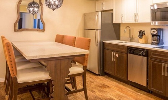 Resort does not offer a complimentary daily breakfast. Your accommodations will include either a full-size kitchen or kitchenette. Housekeeping is performed at each checkout and is available daily upon request for an additional charge. We offer complimentary towel exchanges upon request. Guests must be 21 years and older for check-in. We are a cashless resort and a major credit card will be required upon check-in.