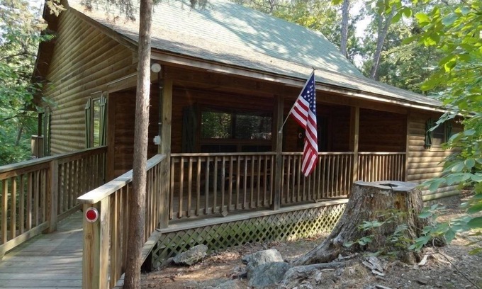 One bedroom, one bath log-sided cottage with private hot tub on Lake Ouachita. by RedAwning | Cottage in Mount Ida