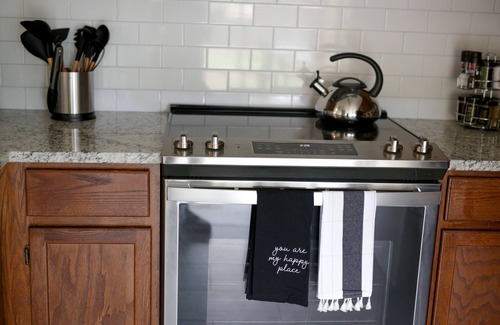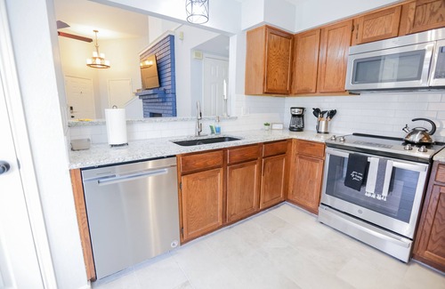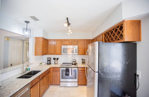 Self- check-in with smart lock & 2 car driveway. The living room is spacious & kitchen is fully stocked. Fully fenced in backyard for your kids to enjoy!