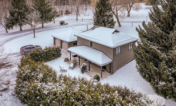 Nestled in the rolling hills of the Niagara Escarpment you’ll find the gated oasis known as Mulmur Lake Farm. Come away from the hustle and bustle of city life and enjoy a slower pace of living on this working sheep farm. A 1.5 hour drive from downtown Toronto, Mulmur Lake is easily found between the two rural communities of Hornings Mills and Honeywood. A unique opportunity awaits you to experience a rural lifestyle. Enjoy organic, multi-colored hen’s eggs for breakfast. A cozy veranda extends along the front of the house with a bistro set to enjoy your morning coffee. Drink in the pastoral surroundings and listen to the gentle sounds of sheep and lambs. Watch the working donkey and shepherding dog as they tend to their flock. Snowshoe, hike or cross-country ski beside the waterfall and around the private lake; or trek the adjacent Bruce Trail. For those seeking to spend a day on the slopes, the farm is conveniently located 20 minutes from Mansfield Ski Club; 35 minutes from Blue Mountain and Osler Bluff Ski Club. The picturesque town of Creemore is 20 minutes away, with quaint stores and coffee shops in the heart of Ontario’s most beautiful countryside.