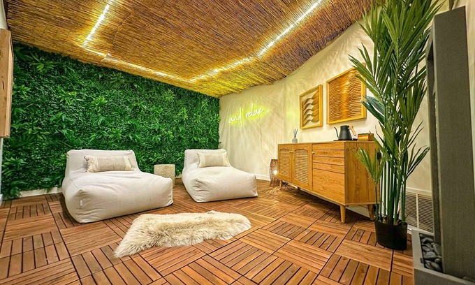 -The Meditation Room+ Spa: Off the Apres Lounge, get away from it all in the peaceful spa and meditation room. With a water feature, a little retro speaker for meditation tracks or smooth jams, loungers, and a 4 person sauna, this is the ultimate spot to relax after a long day outdoors (or during the day while the others are being active!).