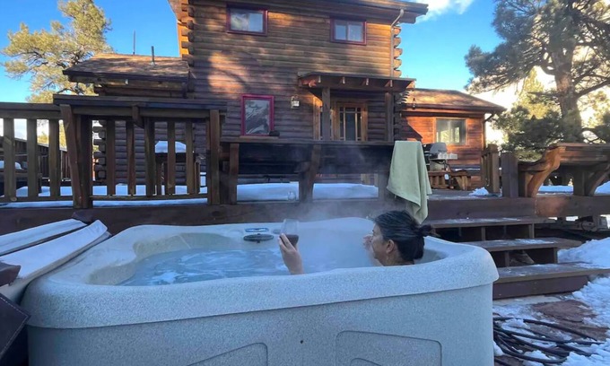 This is truly an extraordinary cabin, surrounded by beautiful Navajo sandstone slick rock at the base of Boulder Mountain. One and a half mile single track dirt road access, best for small SUVs . Our cabin is recommended as a retreat and for those who love the high desert. Broadband to support remote work. Sonos sound system. Fully stocked kitchen with staples provided. Smart TV and The private hot tub. Surrounded by nature, this oasis allows you to unwind and rejuvenate while soaking in the warm, bubbling waters. Whether you choose to soak under the sun during the day or stargaze at night, this hot tub is the perfect place to relax and find serenity.